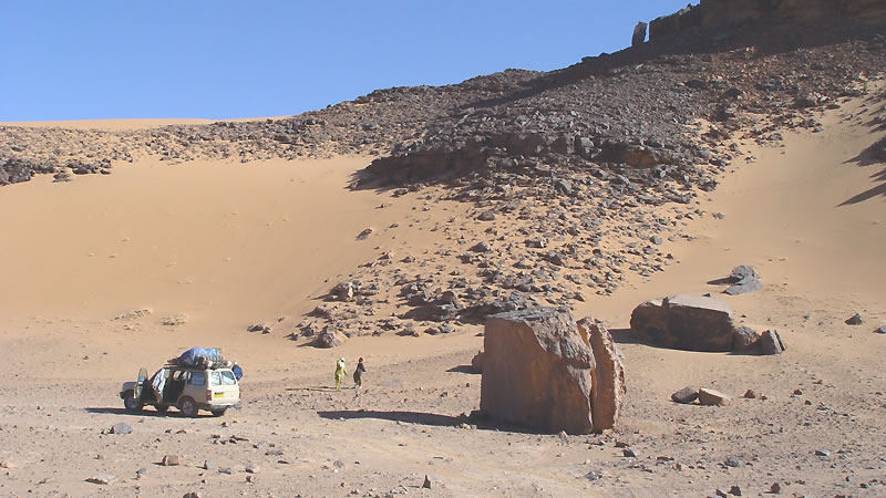 Au cours de la promenade, notre guide nous arrête devant ce gros rocher. Nous y trouvons des fossiles.