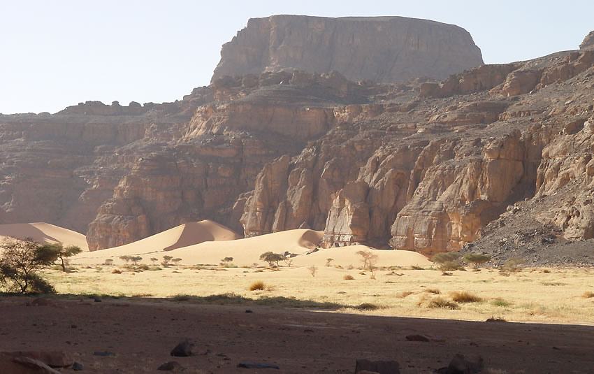 Pendant que le repas se prépare, nous nous promenons dans Ouane Ahar. Les accacias et les petites herbes font penser un peu à la savane.