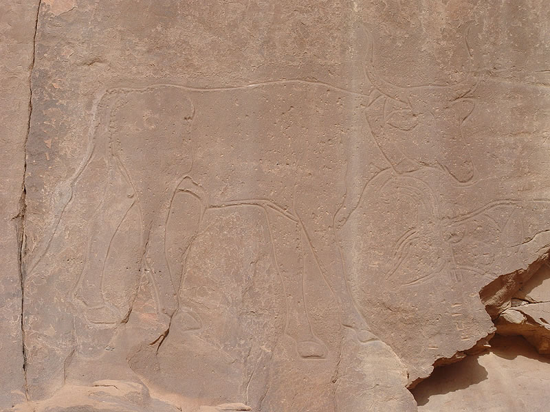 Vaches domestiques avec un collier. (Belle gravure de près de 7000 ans)