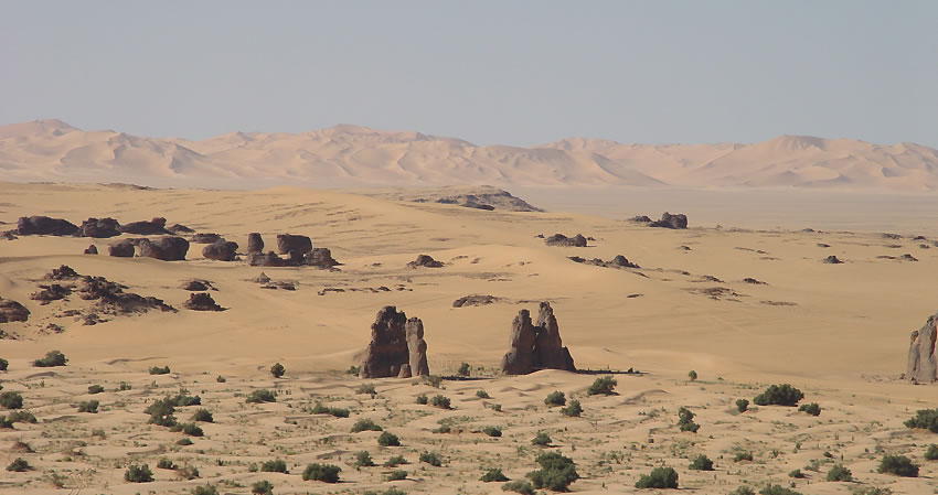 Dernière visite dans le désert: la vache qui pleure. Les gravures se trouvent sur les rochers au premier plan.