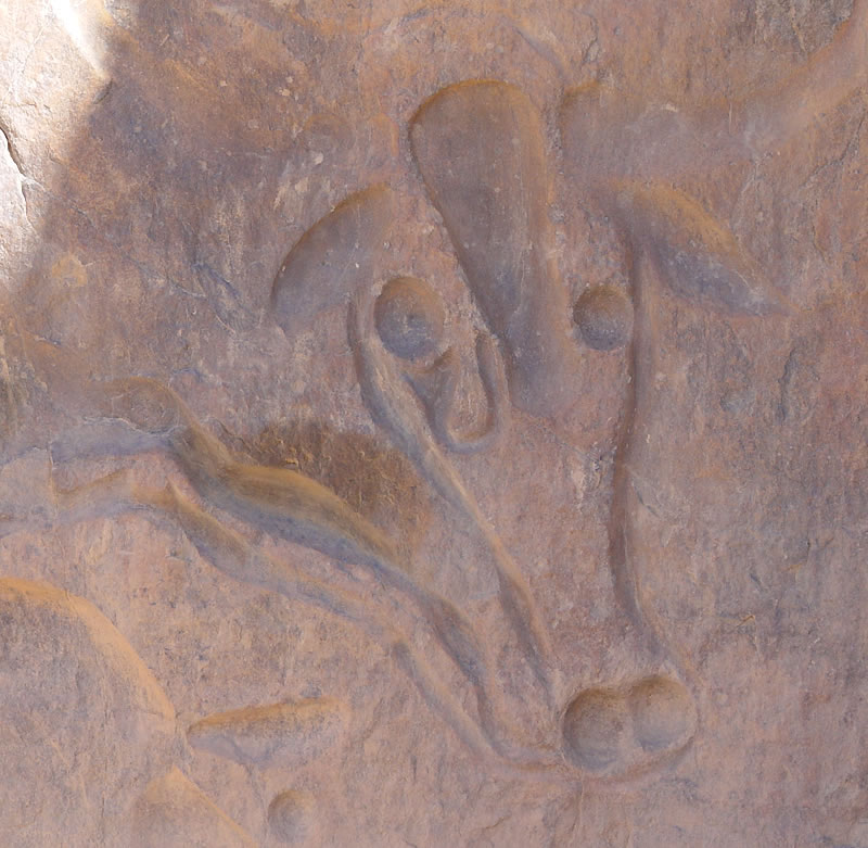 La vache qui pleure.Une des gravures les plus célèbres. La légende dit qu'un jour, les vaches sont venues comme à leur habitude boire de l'eau à cet endroit mais tout était sec alors elles sont mortes de soif. Le propriétaire en retrouvant leur corps à graver sur la roche leur portrait mais avec des larmes car elles étaient tristes de ne pas avoir trouvé d'eau.Previous | Home | Next |