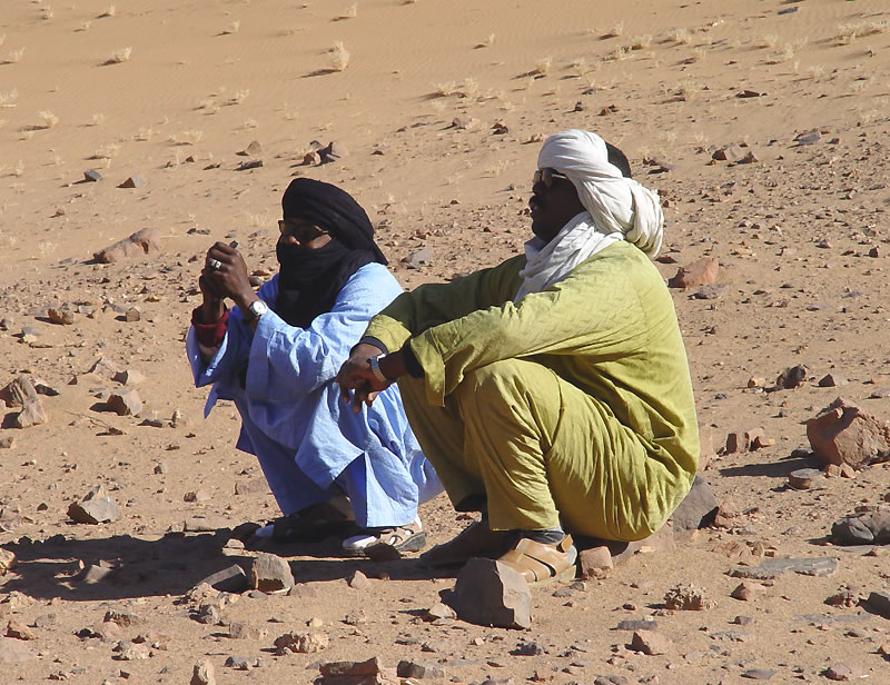 Pendant que nous admirons les algues, Abdellah et Saad discutent dans la position préférée des touaregs.